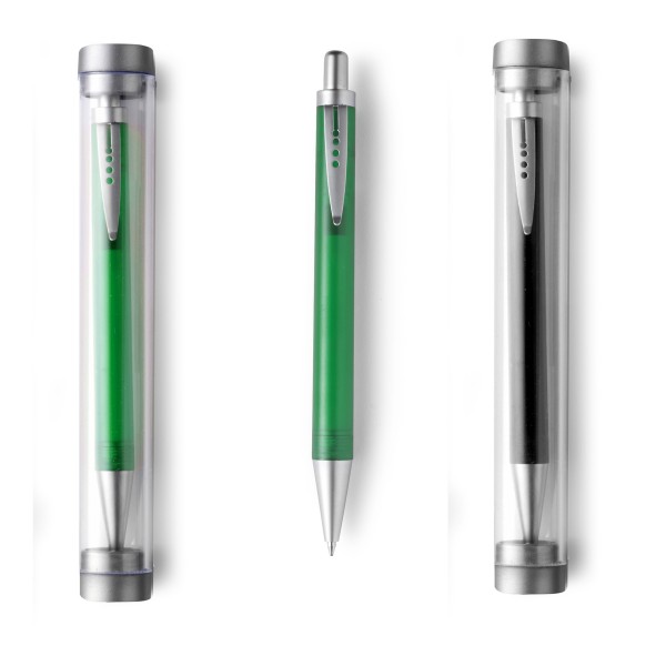 Pix in tub transparent din plastic si metal, mina neagra, dimensiuni 16 cm, greutate 36g.